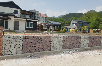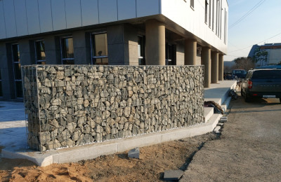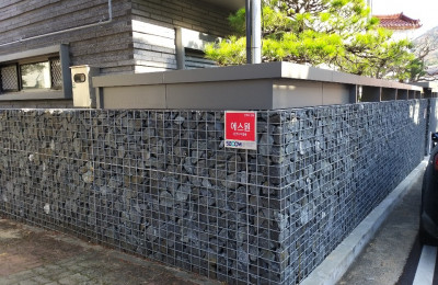 담장시공 모델 하우스 담장 : 개비온 담장 ​모델 하우스 담장​대전 힐스테이트 모델하우스 옆 건물과 경계부분을 개비온 담장으로 시공했습니다건물과 ..