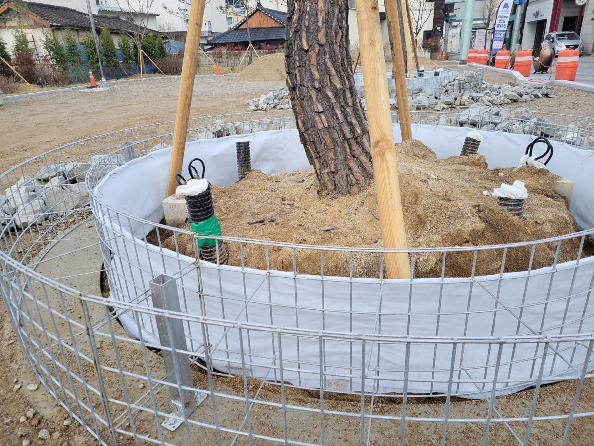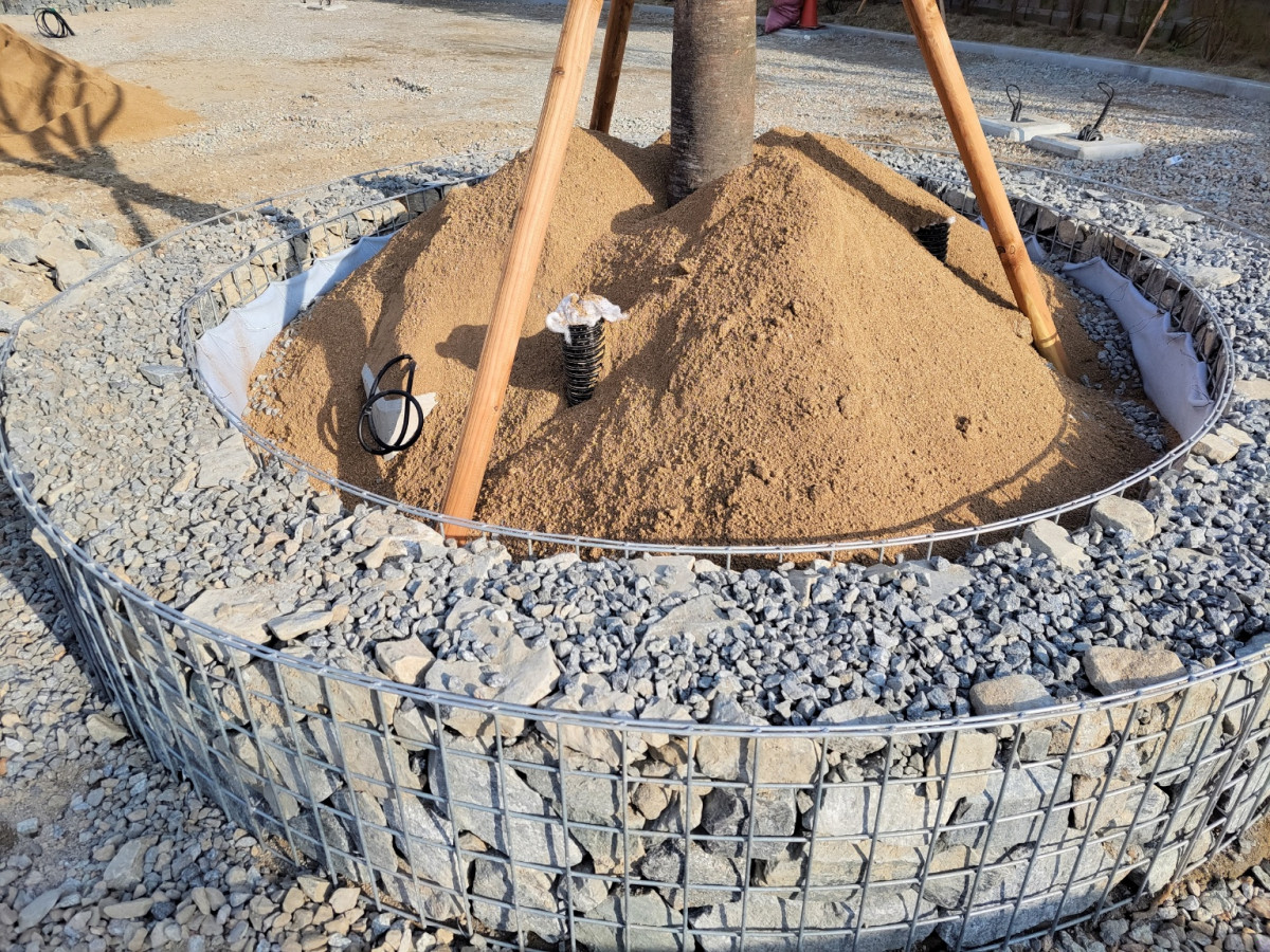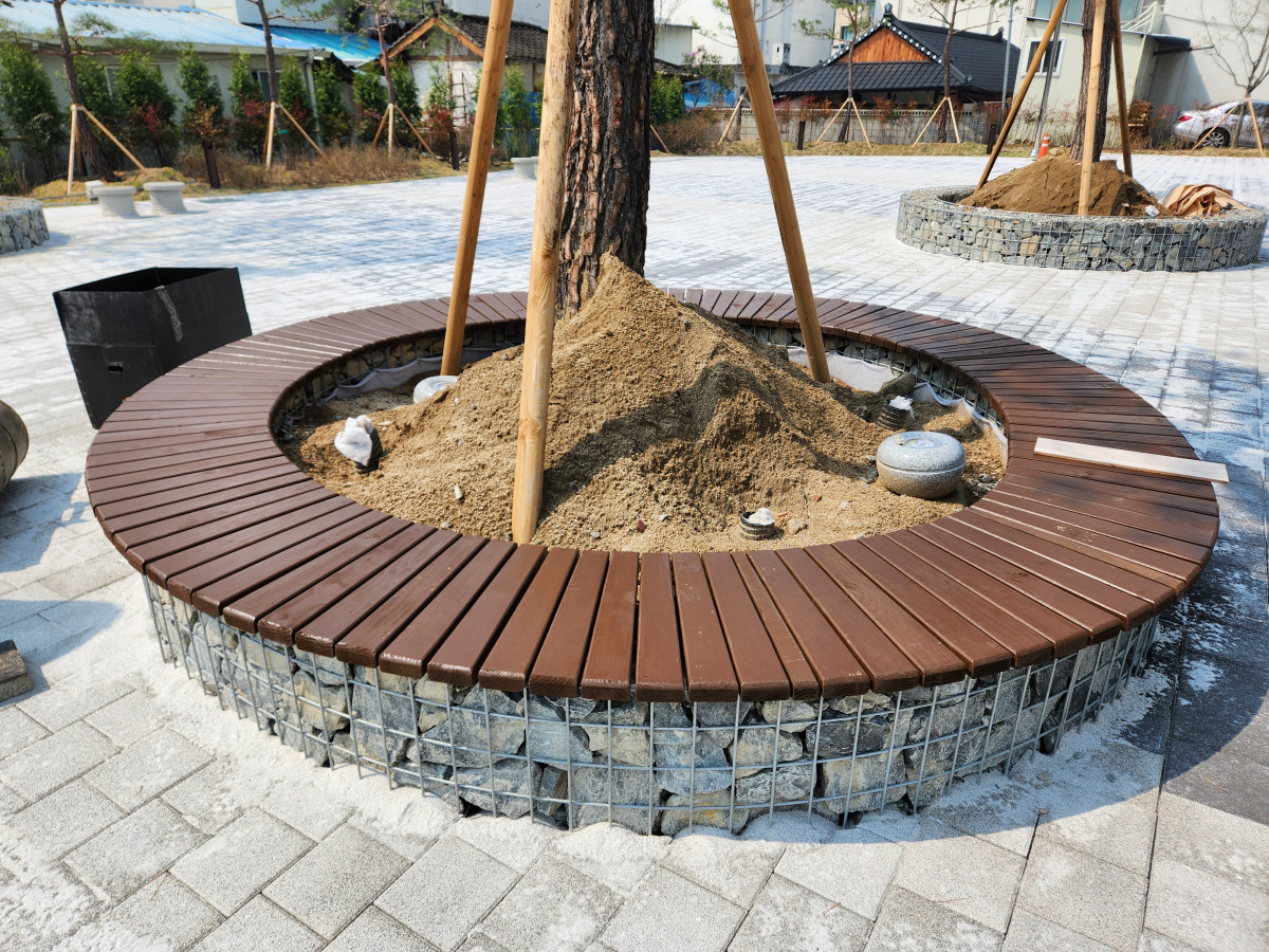 개비온시공 안동광장 원형벤치 : 개비온시공
